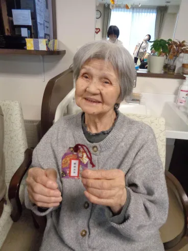 最後に、お守りを贈呈し今年の抱負をお客様に伺いました。悩みながらも「健康に過ごす!」や「喧嘩に負けない!」等、各々の抱負が上がりました。