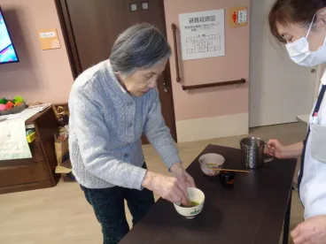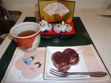 3月3日ひな祭りの日に、月光ユニットでは茶道を、輝ユニットではおはぎ作りをしました。