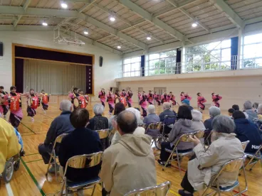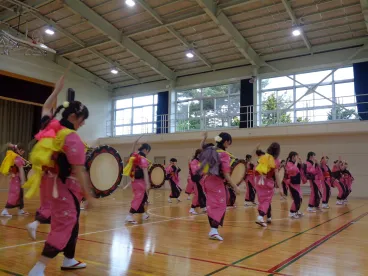 太鼓の音や大きな振り付けに「さっこら ちょいわ やっせ」の掛け声が体育館に響き渡り