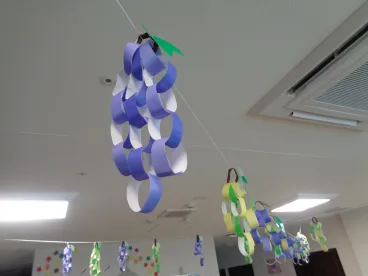 手元で作っていた最中は、「ちょっとこれブドウに見えるかな~」とお客様と話しながら作成していましたが、、、吊るしてみると立派にブドウに見えるじゃないですか!