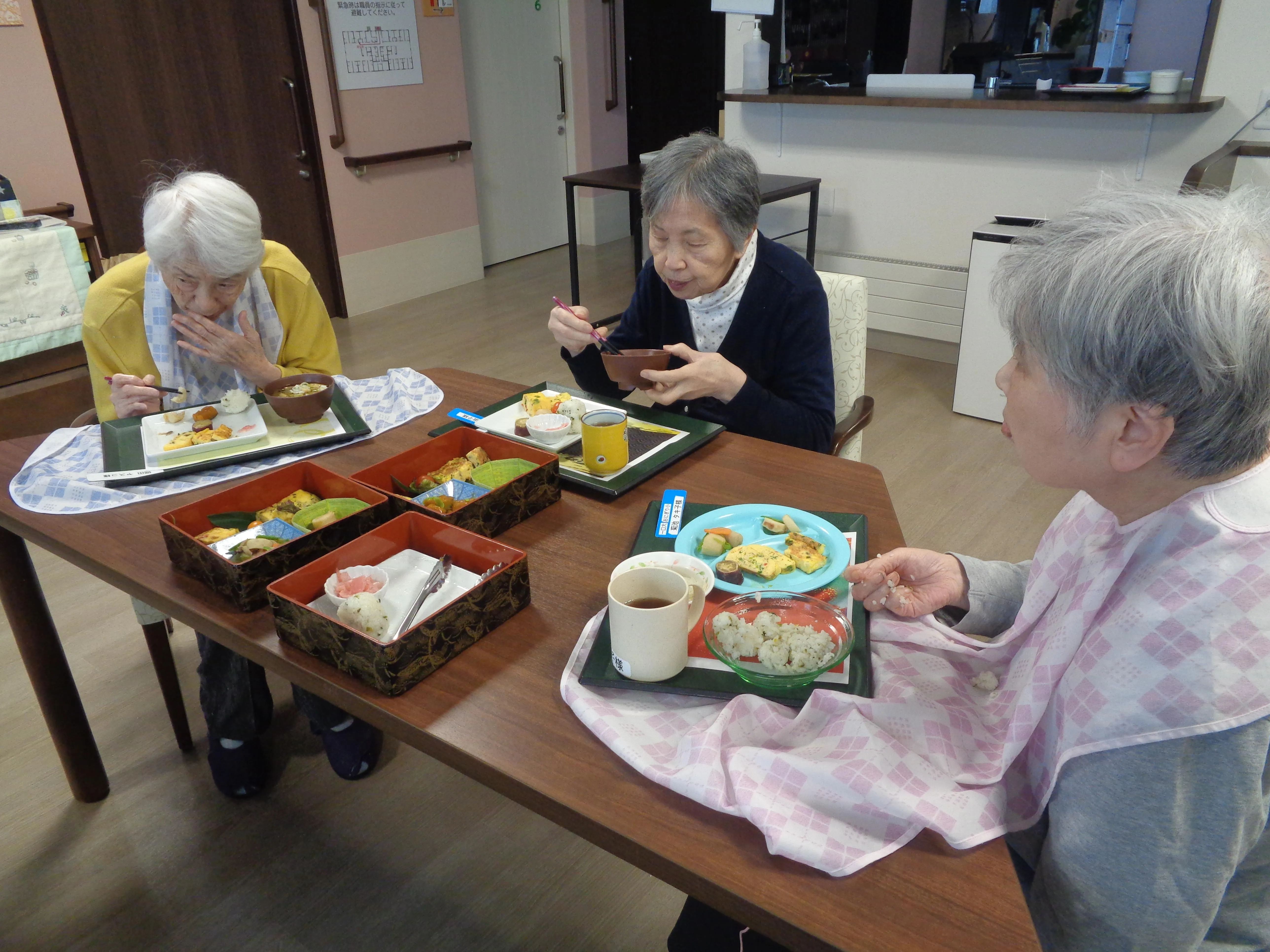 たまにはこうして一つのお弁当を皆さんで分け合い食べるのもいいですね。