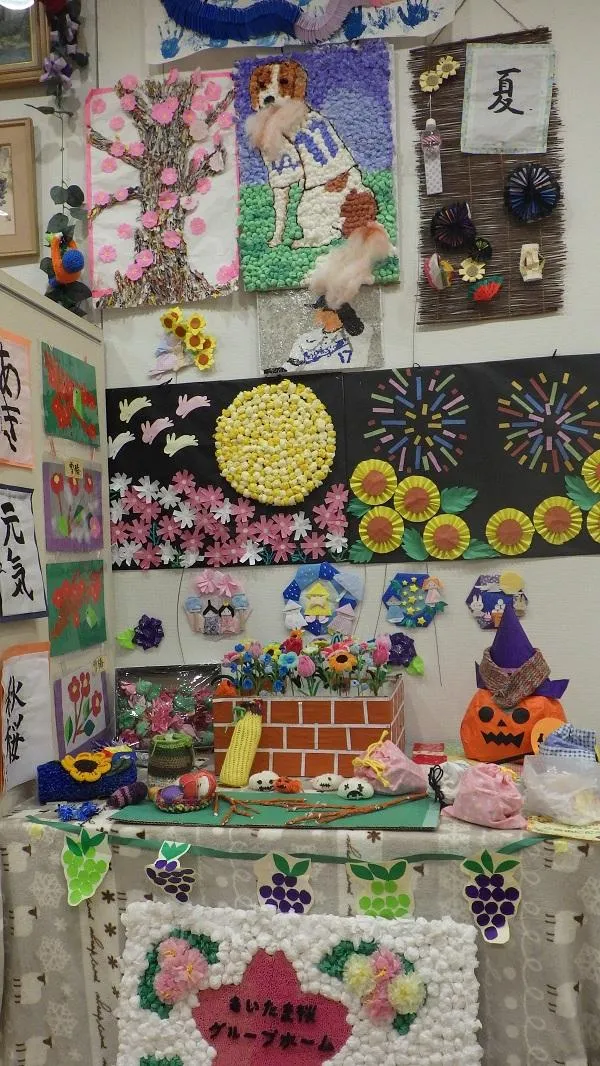 SOYOKAZEさんとの合同作品展に参加しました。ツクイさいたま桜グループホームでも皆様が日々作成されていた作品の数々を展示しプラザノースの会場まで見に行きました。たくさんの作品に魅了されながら気分転換も図っていただきました。また来年も参加したいと思います!