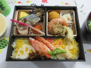 2階で開催し、用意していた「カニ弁当」(めちゃくちゃ高いですよ~)を