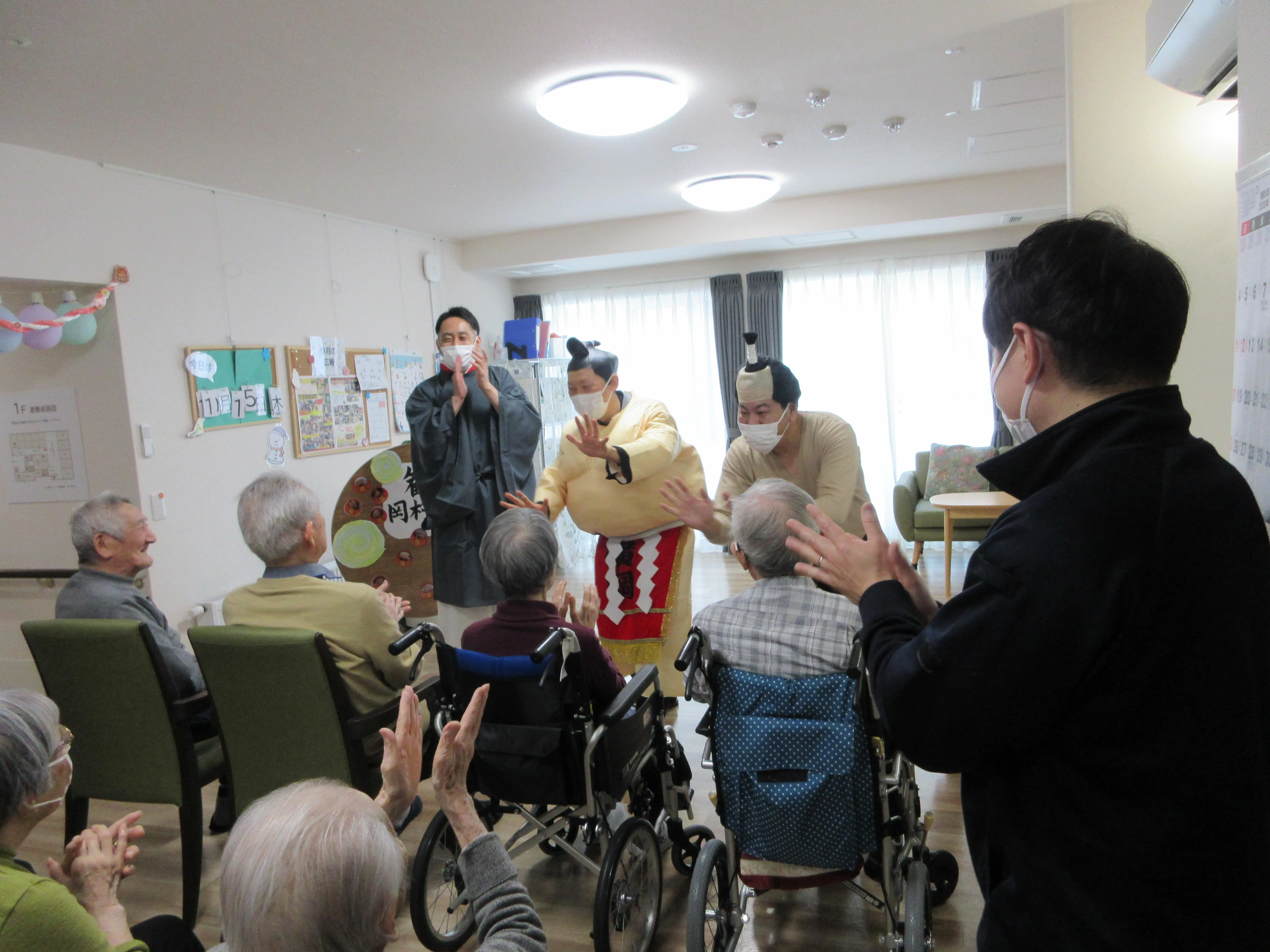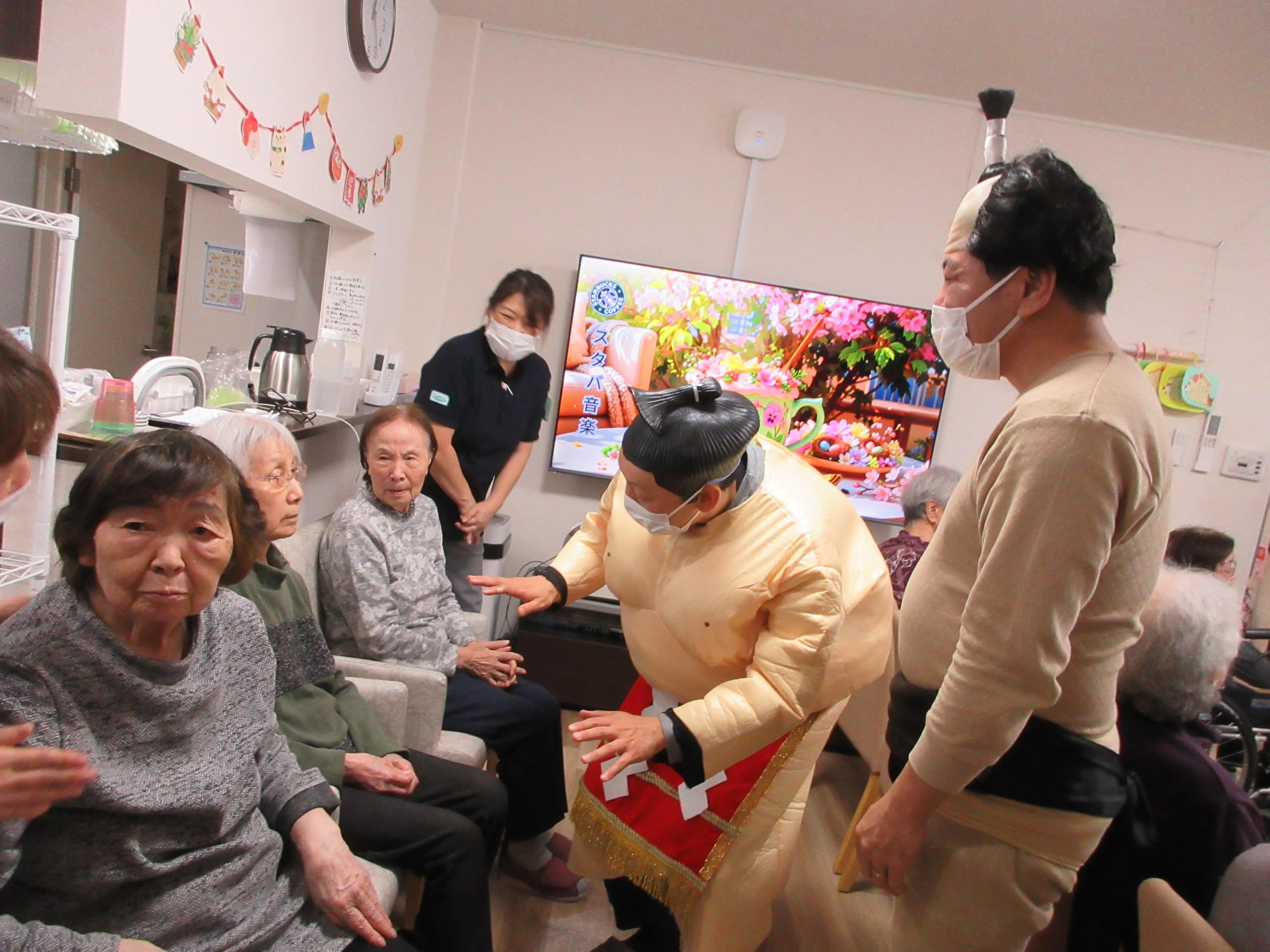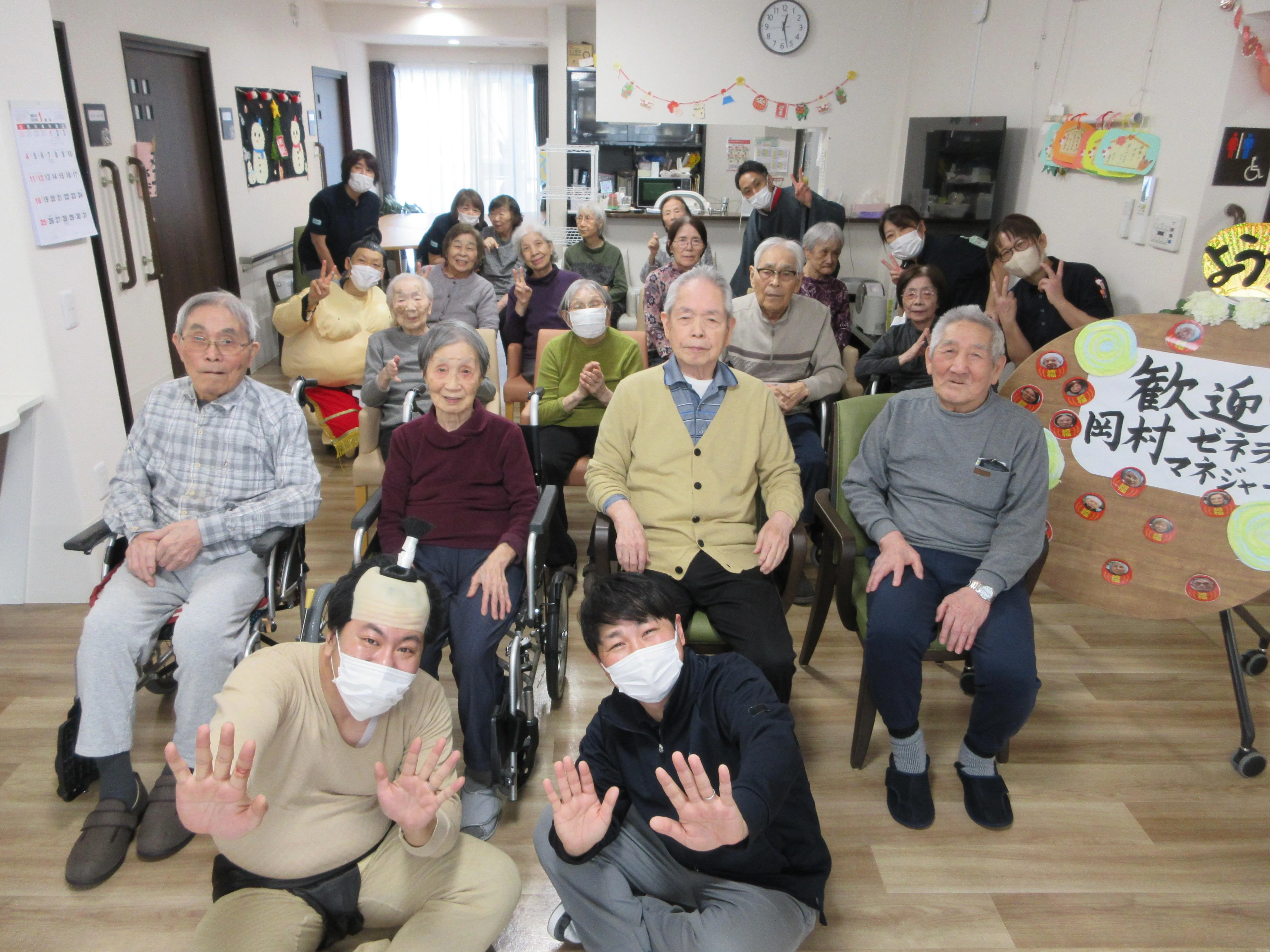 新年の挨拶に、ツクイ横綱の❝あの人❞・・・正体は北海道・東北エリアを統括しているマネジャーの岡村で、新年の挨拶に来ました。お客様が誰かわからず(笑)でしたが、とりあえず、お相撲さんの格好をして来たので、大盛り上がりでした(笑)今年も一年良い年となりそうです(笑)