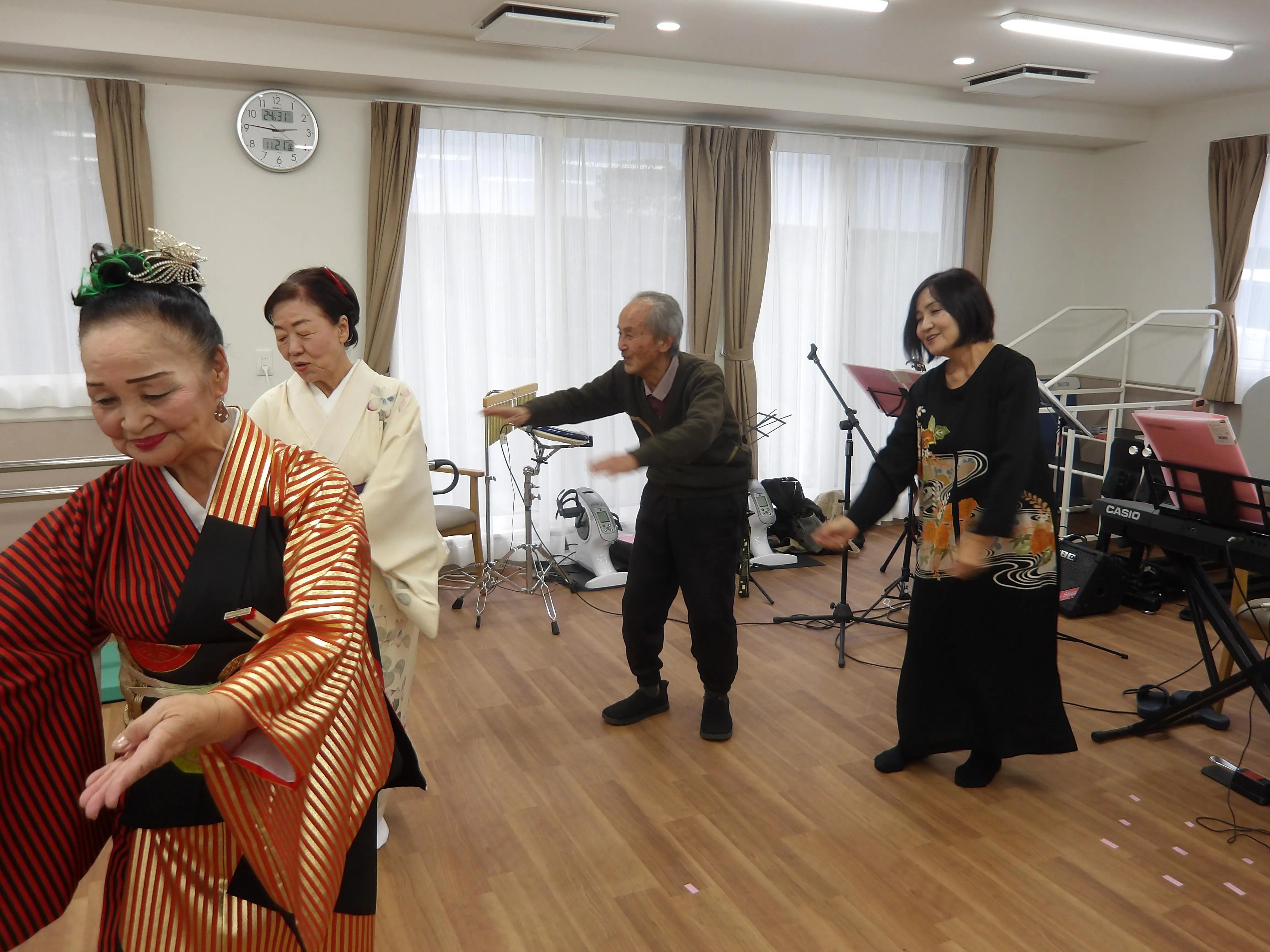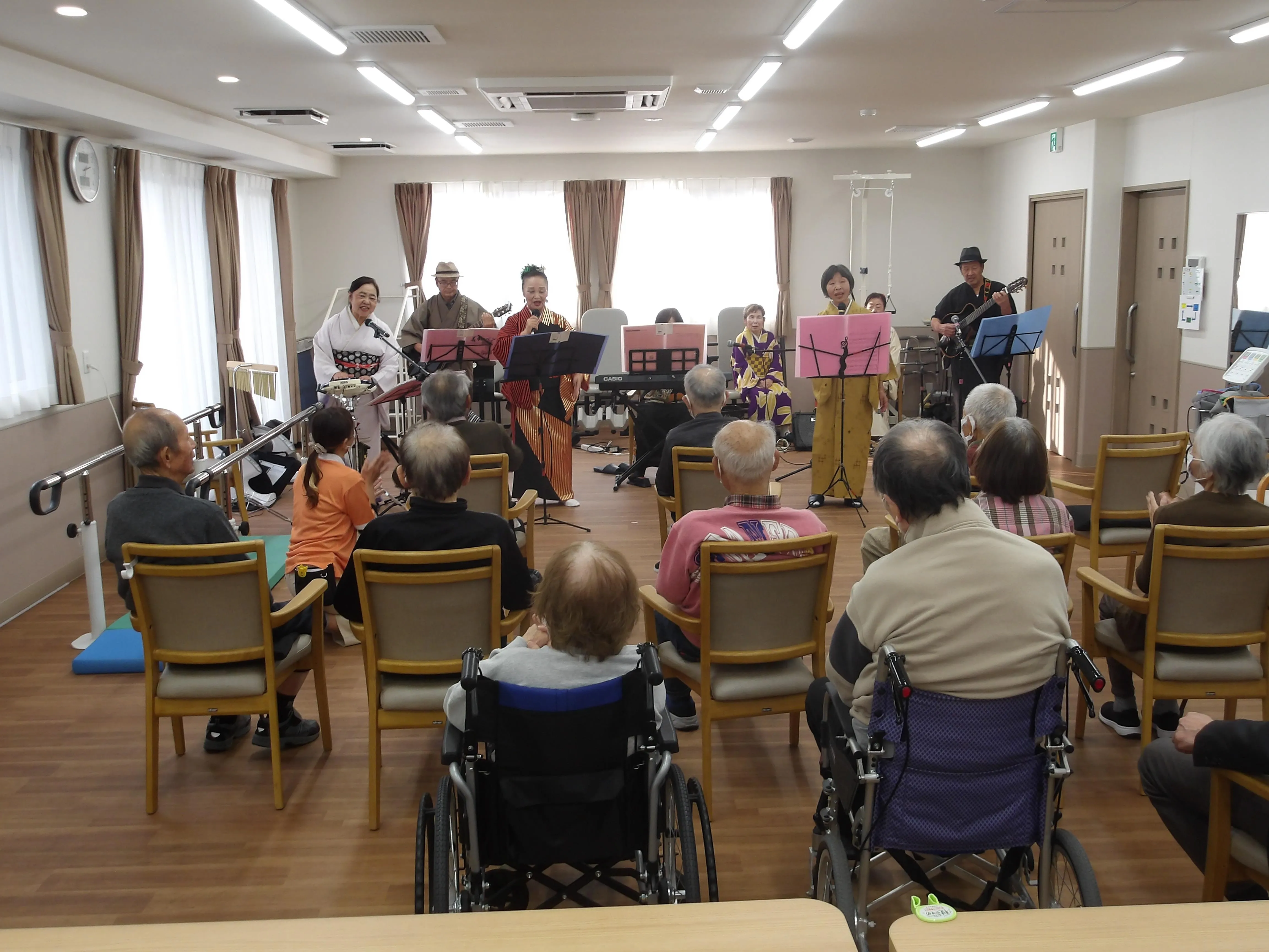 11/21は、地域で活躍する『着物バンド』のボランティア団体様に来て頂きました!演奏・歌に癒され、大盛り上がり!陽気で楽しい雰囲気に思わず一緒に踊りだす方まで!楽しいひと時を過ごさせていただきました!