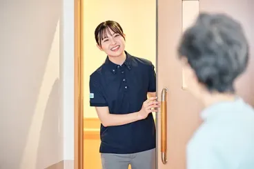 各居室の緊急通報ボタンでコールいただくと、スタッフが迅速に駆けつけます。ご家族や医療機関への連絡・救急車の手配、情報提供などを行います。