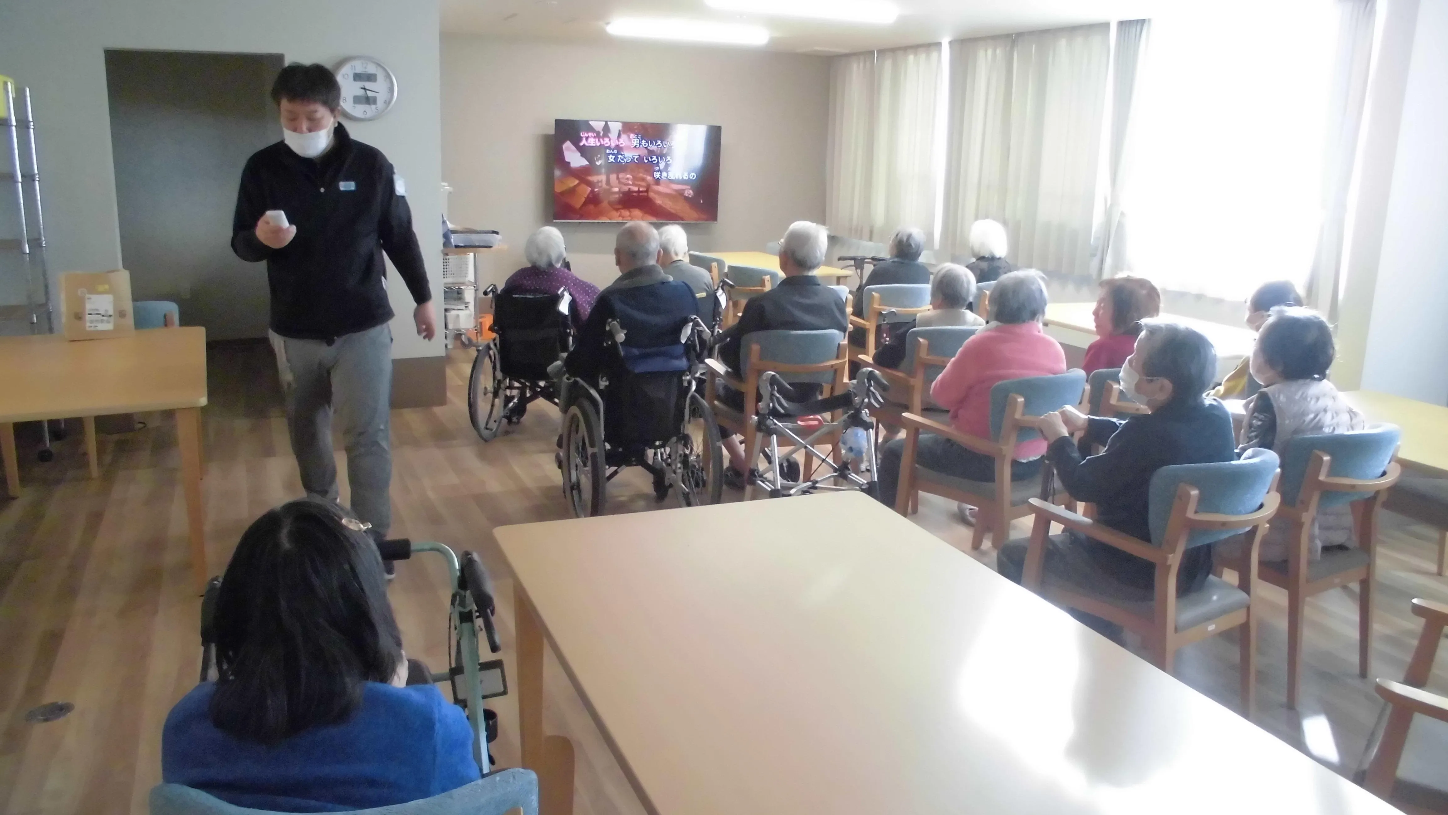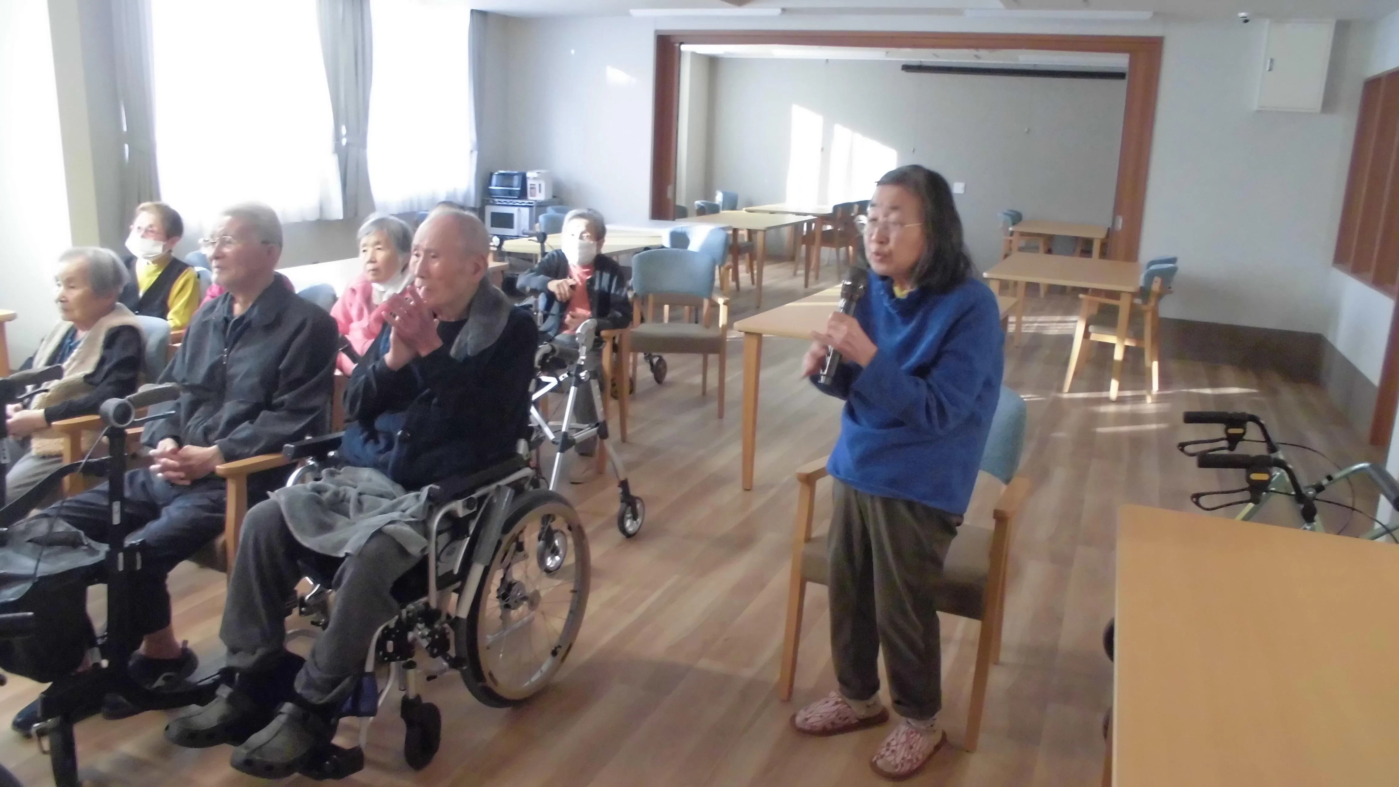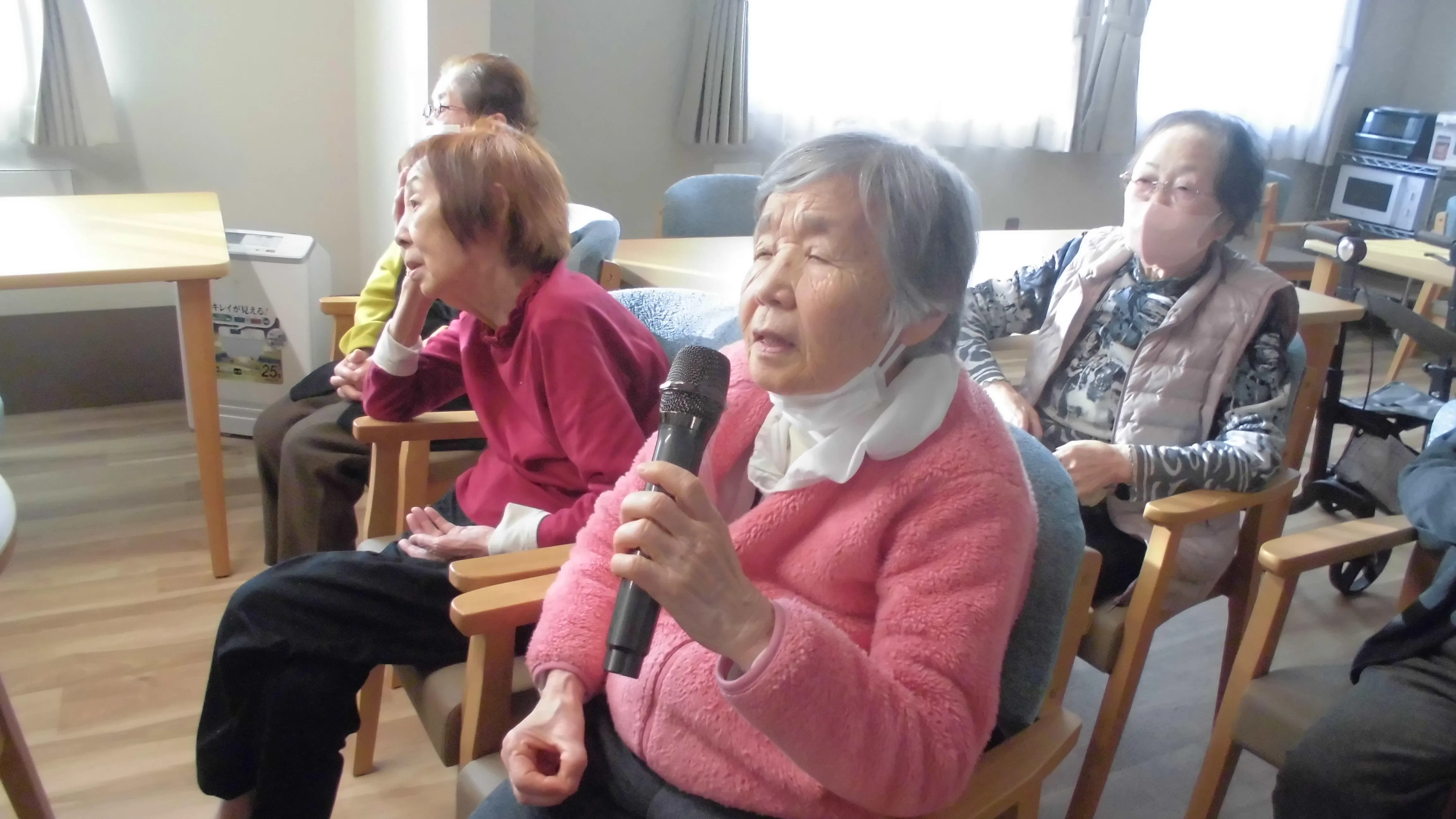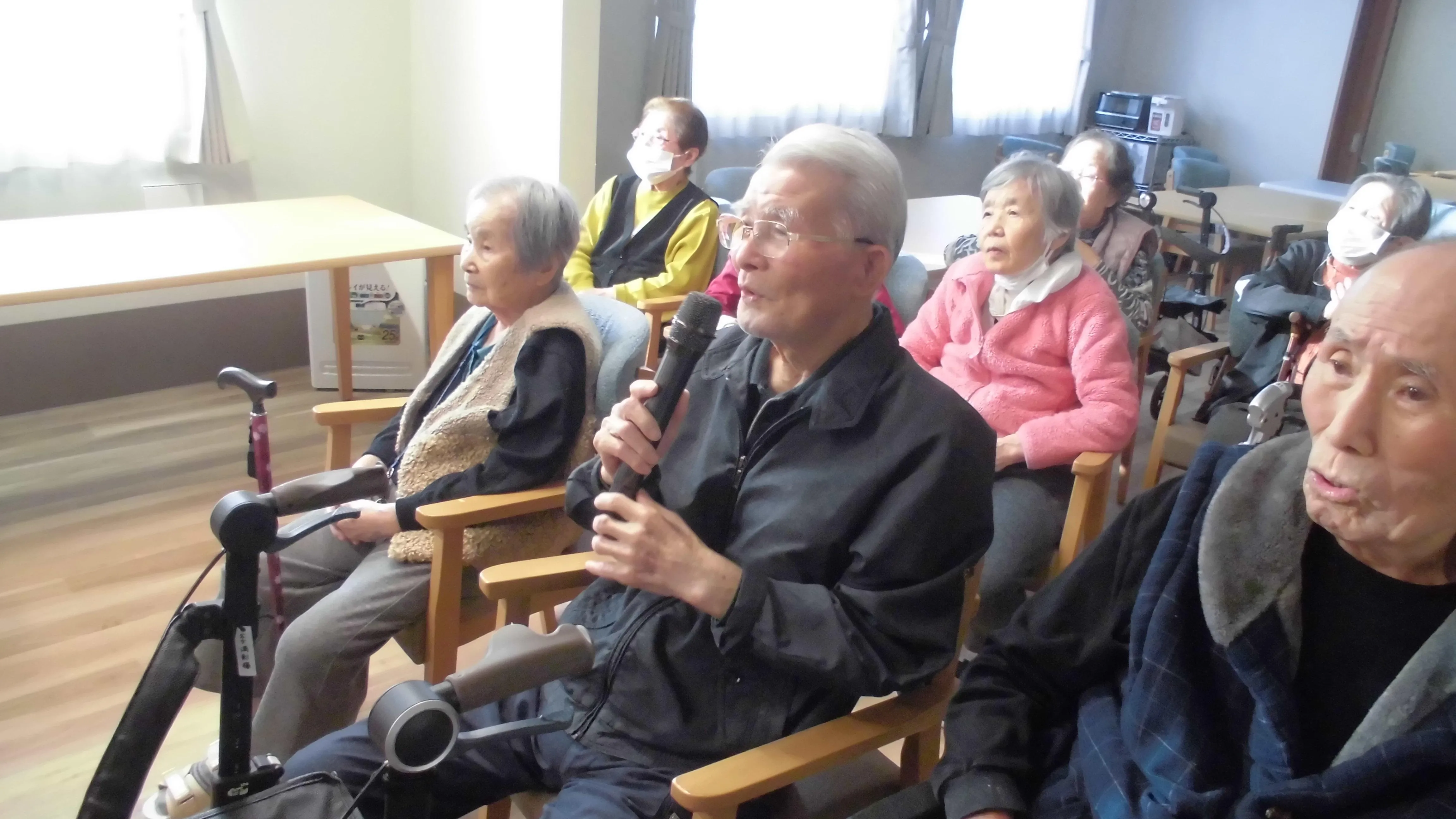 カラオケ大会を開催いたしました。皆様で懐かしい歌を聴く、歌うことで、普段交流があまりないお客様同士でも会話が弾まれ・・とても楽しまれているご様子でした。お客様からも「歌を歌うとすっきりするね」「皆で歌うと楽しいね」とのお言葉をいただき、心が温まる一日となりました。