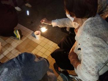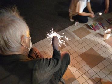 8月20日(火)夕食後にお客様20名にご参加いただき、花火大会を行いました。「子どものころを思い出すねえ」「線香花火は昔はもうちょっと玉が大きかったよね」など思い出話も弾みました。「来年はスイカ割もしたいね」「そのためにお互い元気でいましょう」と、素敵なお約束もして、ほっこりとした気持ちになりました。