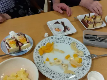 2月14日はバレンタインデー!ということで、女性のお客様たちがご主人のことを想いながら、チョコレートケーキ作りを行いました。個性あふれる飾りつけのケーキが出来上がり、皆さんでおいしく召し上がりました。3月は、前回好評だったおはぎ作りを行う予定です。