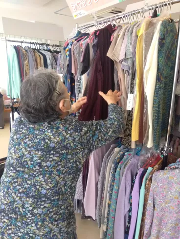 おしゃれな女性の皆様に大人気。衣類だけでなく帽子や各地のお菓子など、ワイワイとおしゃべりしながら選んでおられました。お気に入りのお洋服が見つかって、にっこりのみなさまでした。