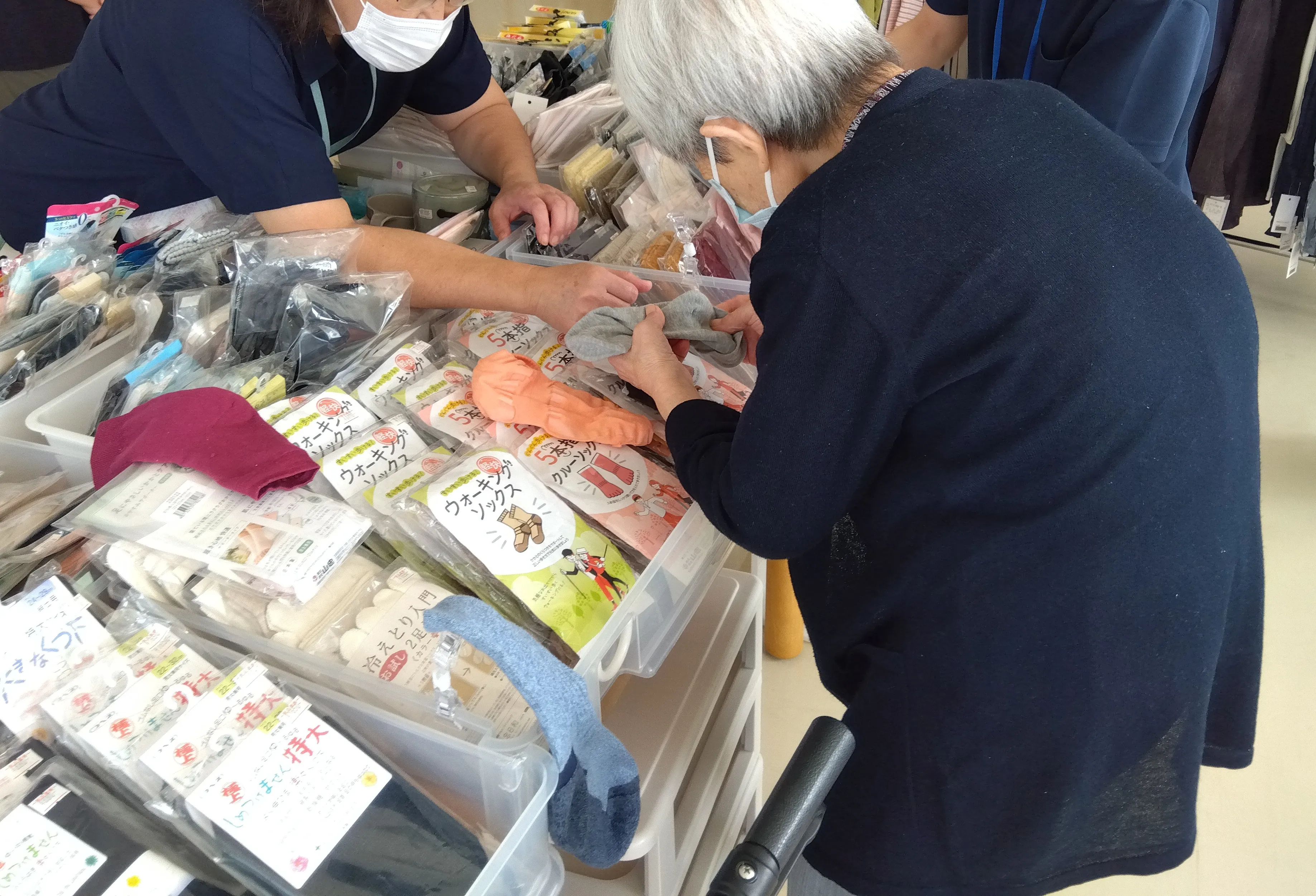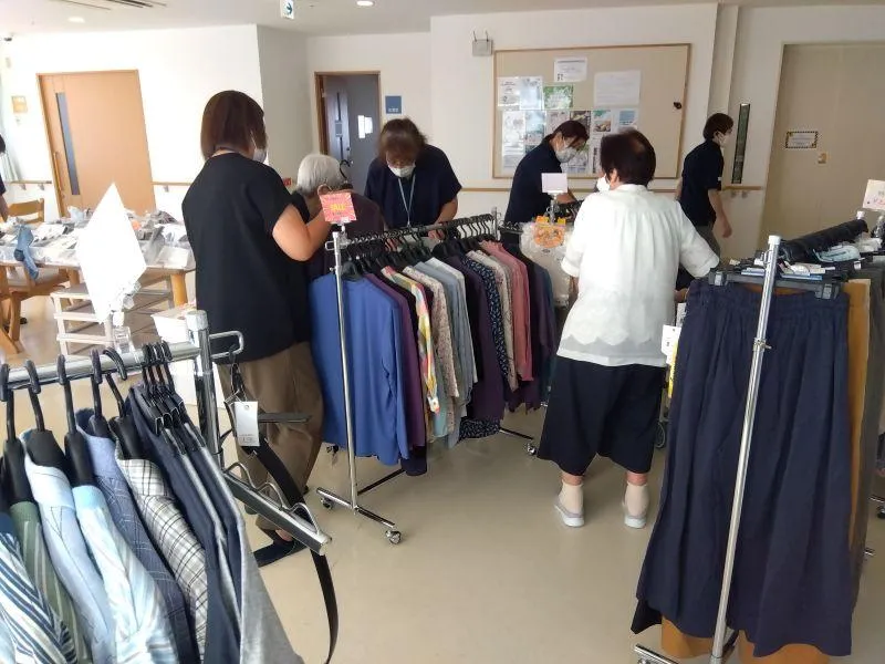 9月22日アミエル様より、秋冬物衣類と靴の販売を行っていただきました。毎年2回春と秋に販売いただき、おしゃれな女性のお客様中心に毎回賑わいます。少し涼しくなってきたところで運動をしたいと、リハビリシューズも人気でした!
