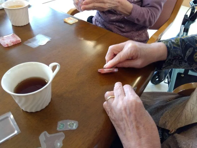 10月の茶話会は、11月のツクイ&そよ風合同作品展に向けて、ゲスト講師をお迎えしてお花のマグネットを作りました。とっても細かい作業でなかなか苦戦しましたが、個性あふれる素敵なマグネットができ上りました。