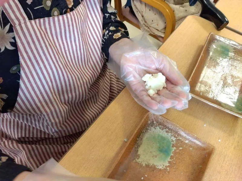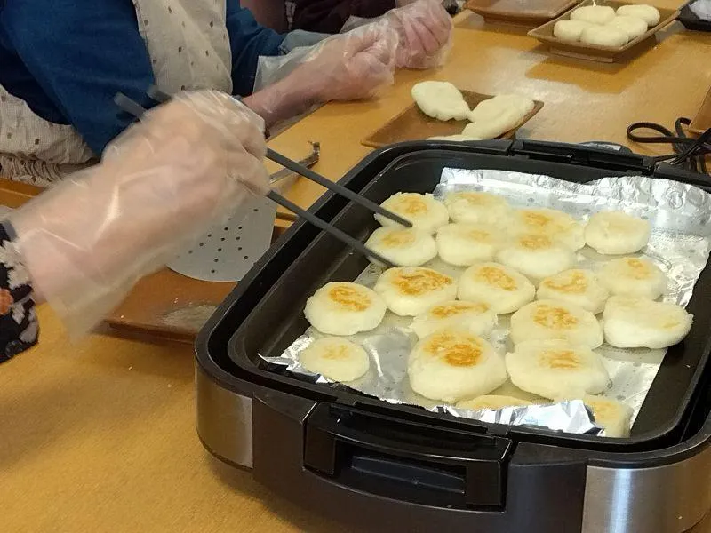 新潟県のツクイの事業所にて、毎月第一日曜日に行っている北海道フェア。10月はじゃがバターでした。お昼にじゃがバターを食べてもまだまだジャガイモが余ったため、急遽北海道の郷土料理でもある「いももち」を作りました。ふかしたジャガイモを潰してこねて、丸めて・・。厨房スタッフ特性のみたらし餡をかけて、皆さんでおいしく召し上がりました。