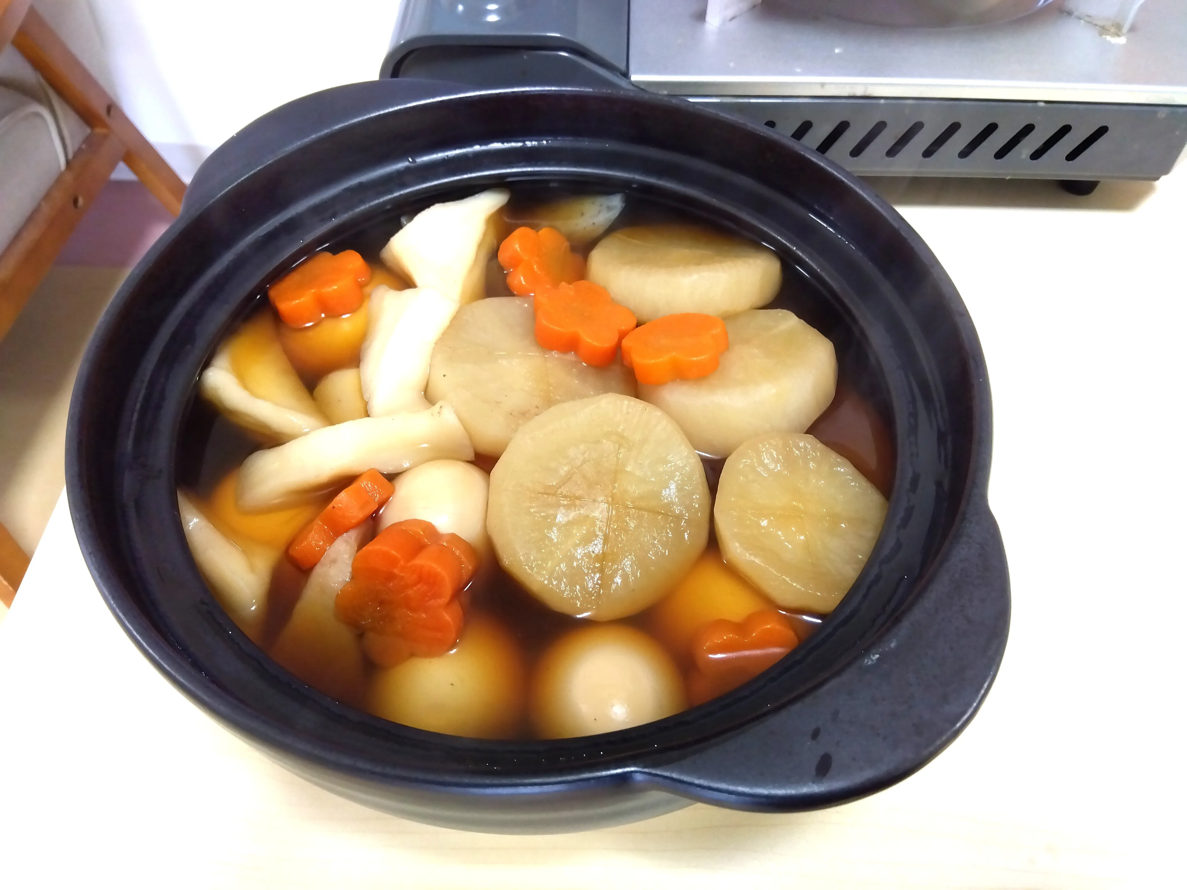 「おでんで一杯やろうと思って」「しみしみ大根最高だね!」など、皆さんで召し上がりました。