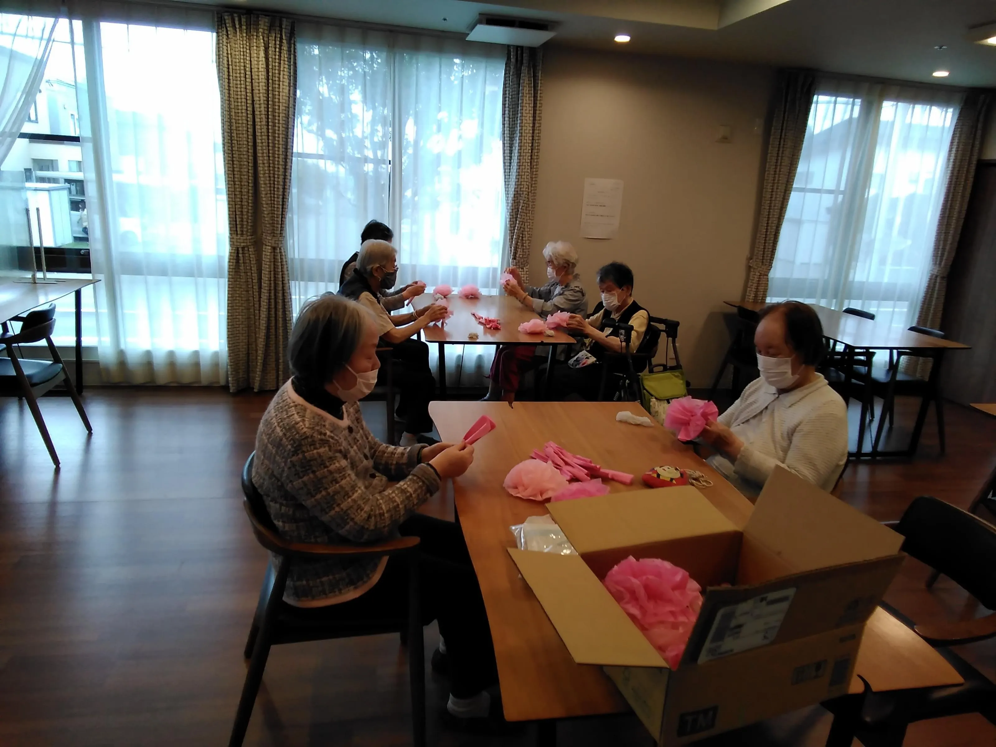 百寿のお祝いの準備、他のお客様にもお手伝いしていただきました。