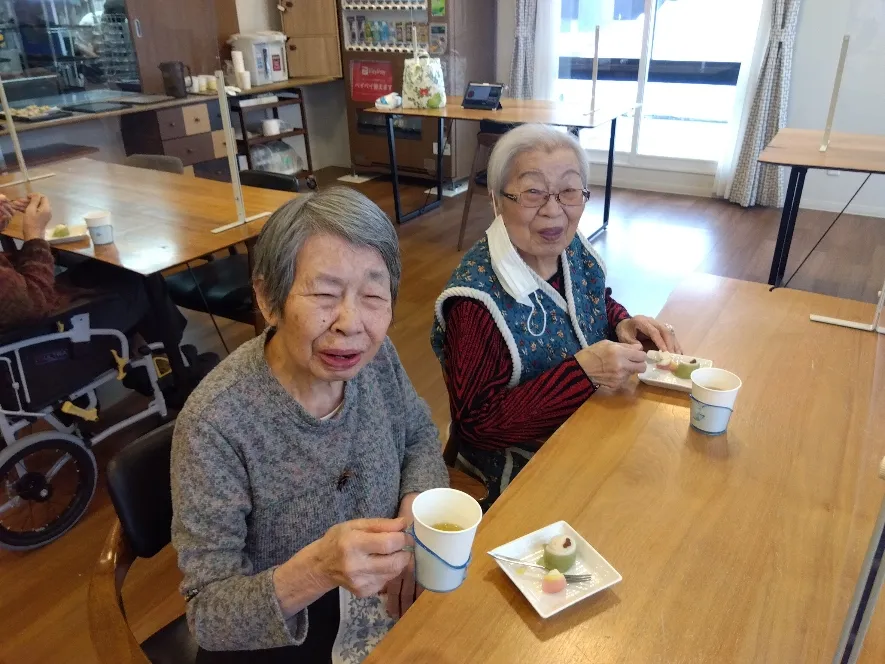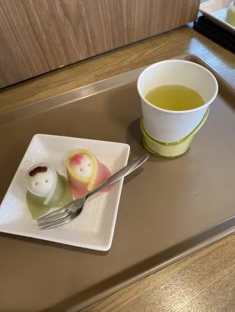 色鮮やかな和菓子を囲みながら、「きれいだね」「食べるのがもったいないね」と笑顔でお話しされる姿が印象的でした。