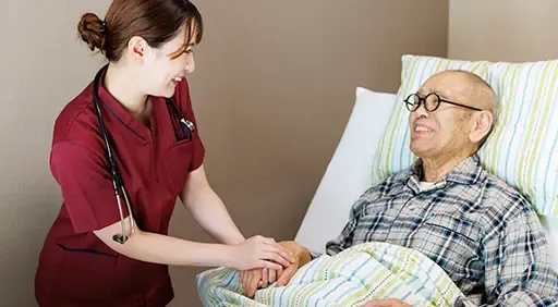 ツクイのホスピスは、病院での終末期看護の機能を外部の主治医にアウトソーシングすることで、高度な看護ケアに注力した在宅型の医療が提供できる施設です。
