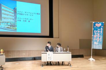 12月8日に横浜市戸塚区で開催された障害者週間シンポジウム『とつかで暮らす』にツクイ・サンフォレスト横浜戸塚東でクリーンサポーターとして勤務する犬塚大翔が登壇しました。『とつかで暮らす』は戸塚区で働く障がいを持つ方々が地域の皆さまに思いを伝えることを目的としたシンポジウムで、犬塚は、介護の現場での自身の業務と将来の夢などについて発表しました。