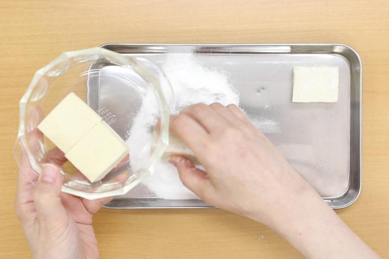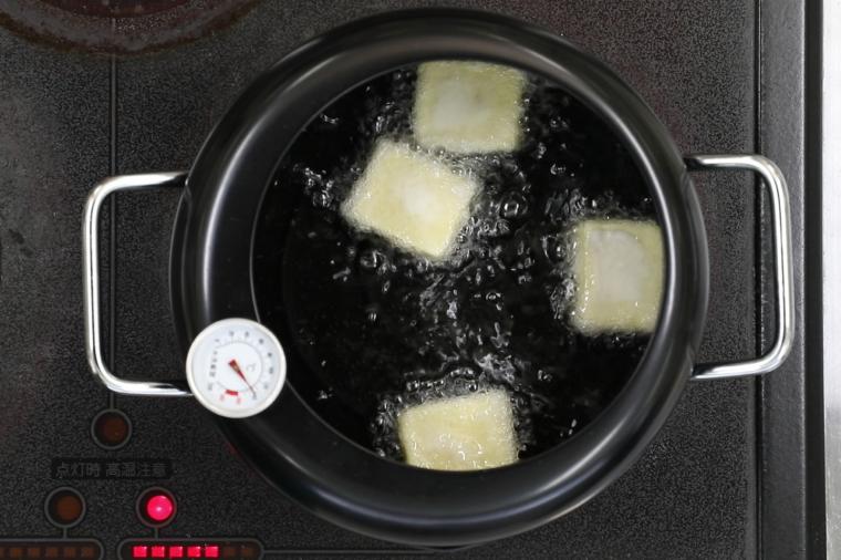 ⑤ 高野豆腐に片栗粉をまぶし170℃の油で揚げる。
