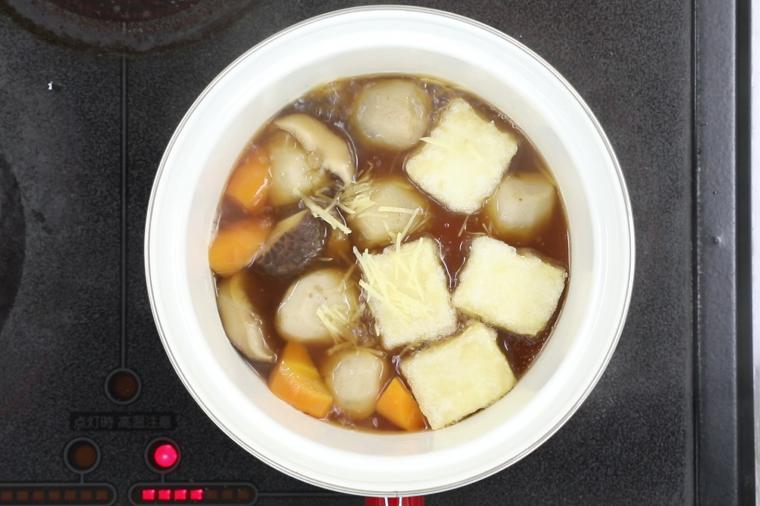 ⑥ ④の鍋に揚げた高野豆腐と千切りにしたしょうがを入れ2~3分煮て火を止め、いんげんを入れる。