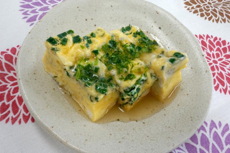 ⑤③をお好みのサイズにカットして盛り付け、④のあんをかけ、青のりをちらして完成。