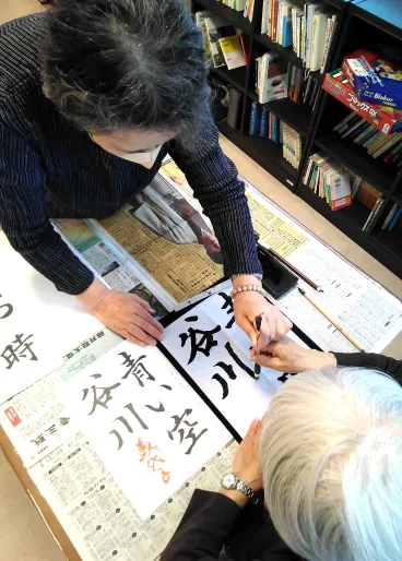 お一人おひとり先生がゆっくりみていき、筆を一緒にもち、書き方など丁寧に教えてくださいます。