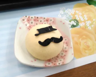ドームケーキにはチョコレートで髭と帽子が飾られており