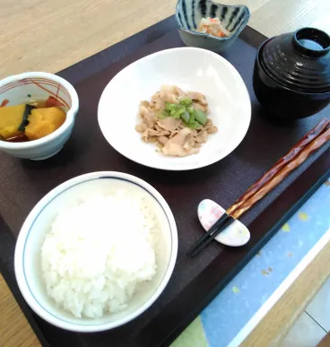 豚肉の香味焼きはご飯にとてもよく合う味付けで、とても美味しかったと喜んでいただきました