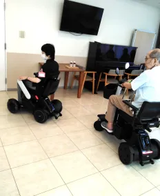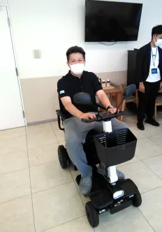 操作はレバーで簡単にでき、速さの調節もできるので、屋外でも室内でも乗ることができました。