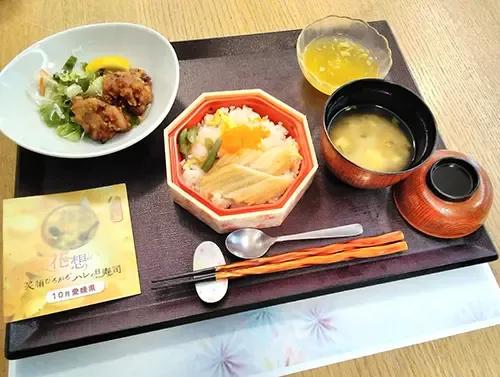 唐揚げは柔らかく、散らし寿司はとても綺麗で美味しいと好評でした。