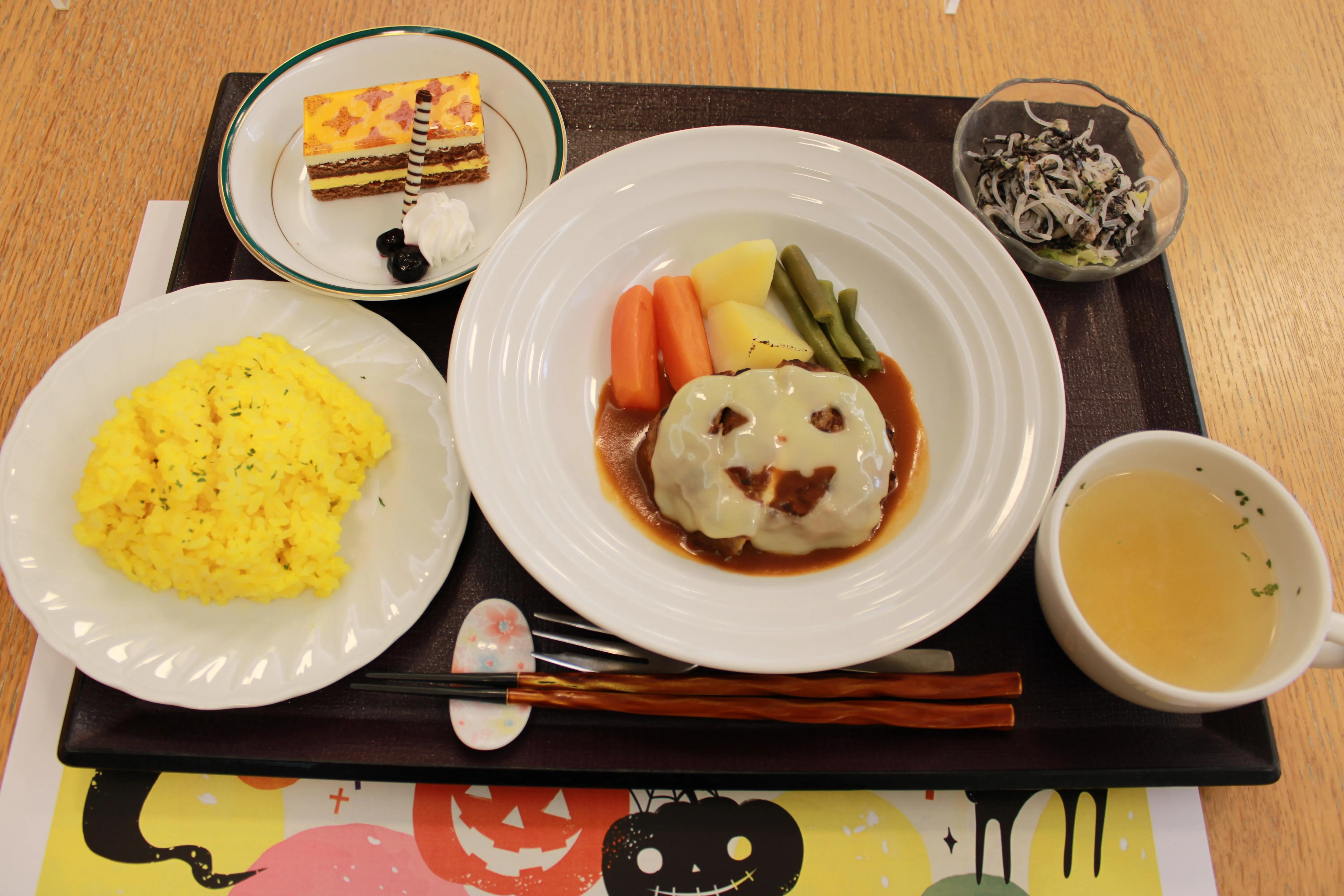 ハンバーグの上にはカボチャの顔のチーズがのっており、ハンバーグを見たとたんに皆様笑顔になっていました!