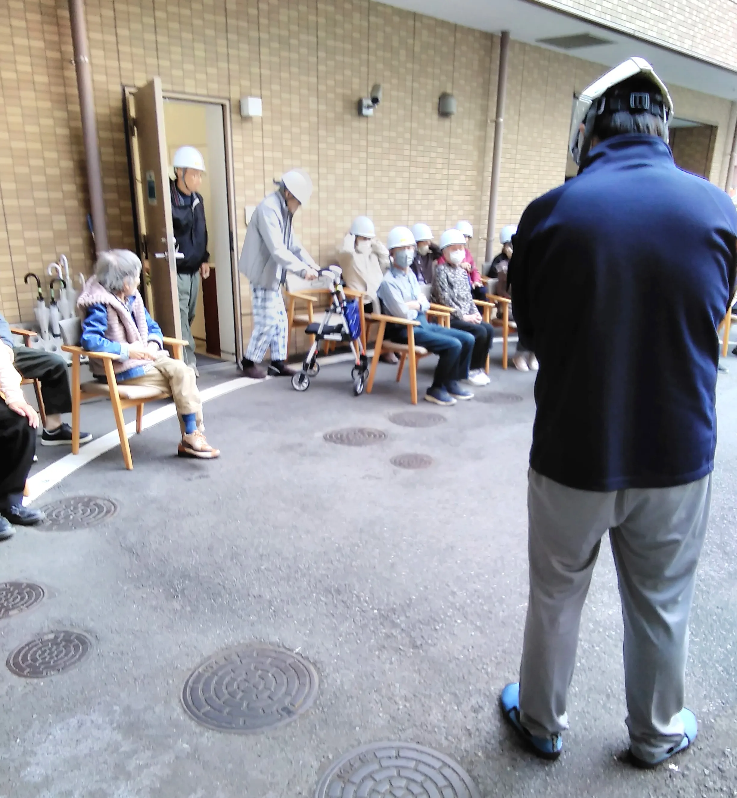 避難できる方は駐車場へ来ていただき、ご入居のお客様全員の安否確認をします。