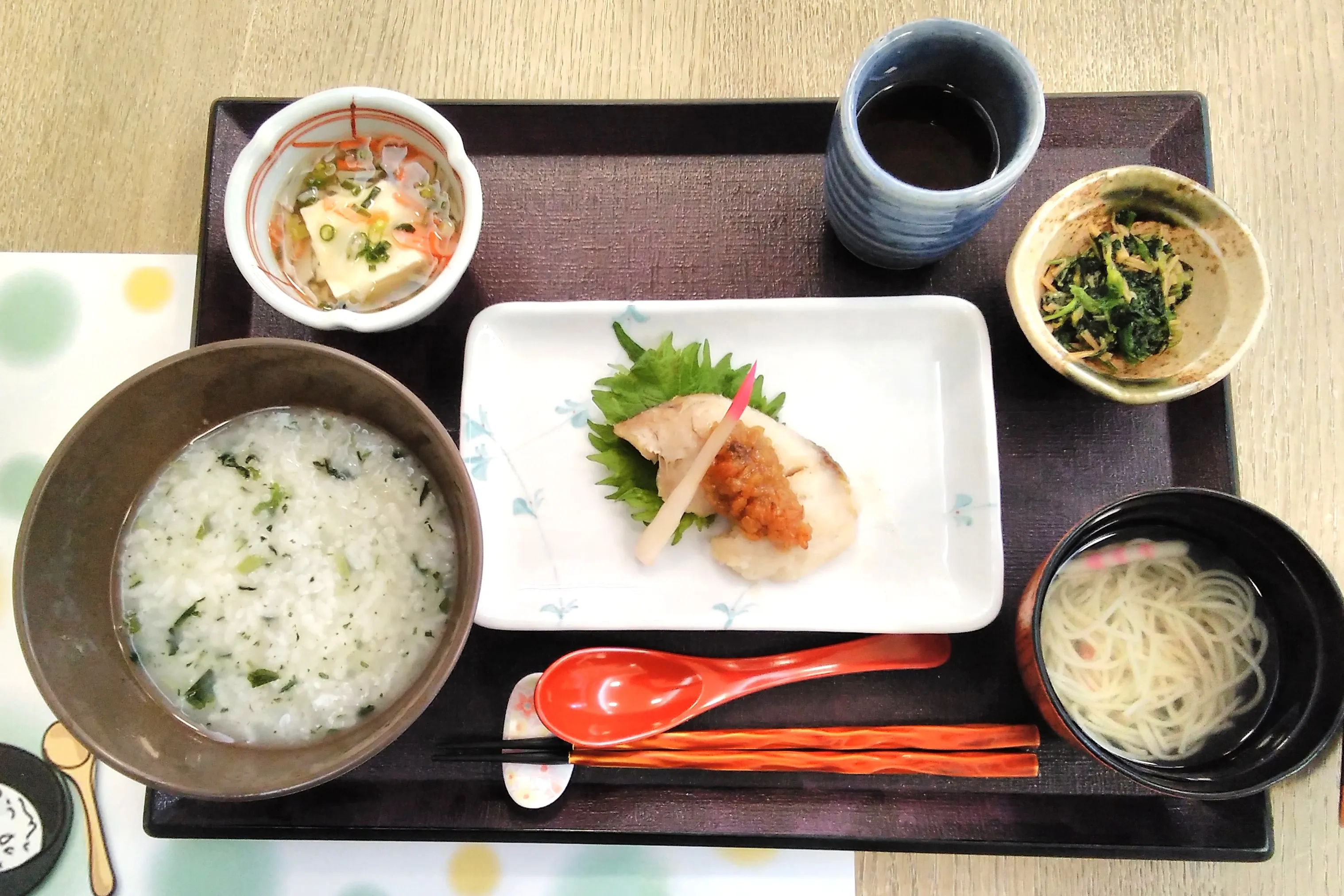 七草の苦みや香りがお粥の素朴な味とよく合い、心も体もほっとする昼食でした。