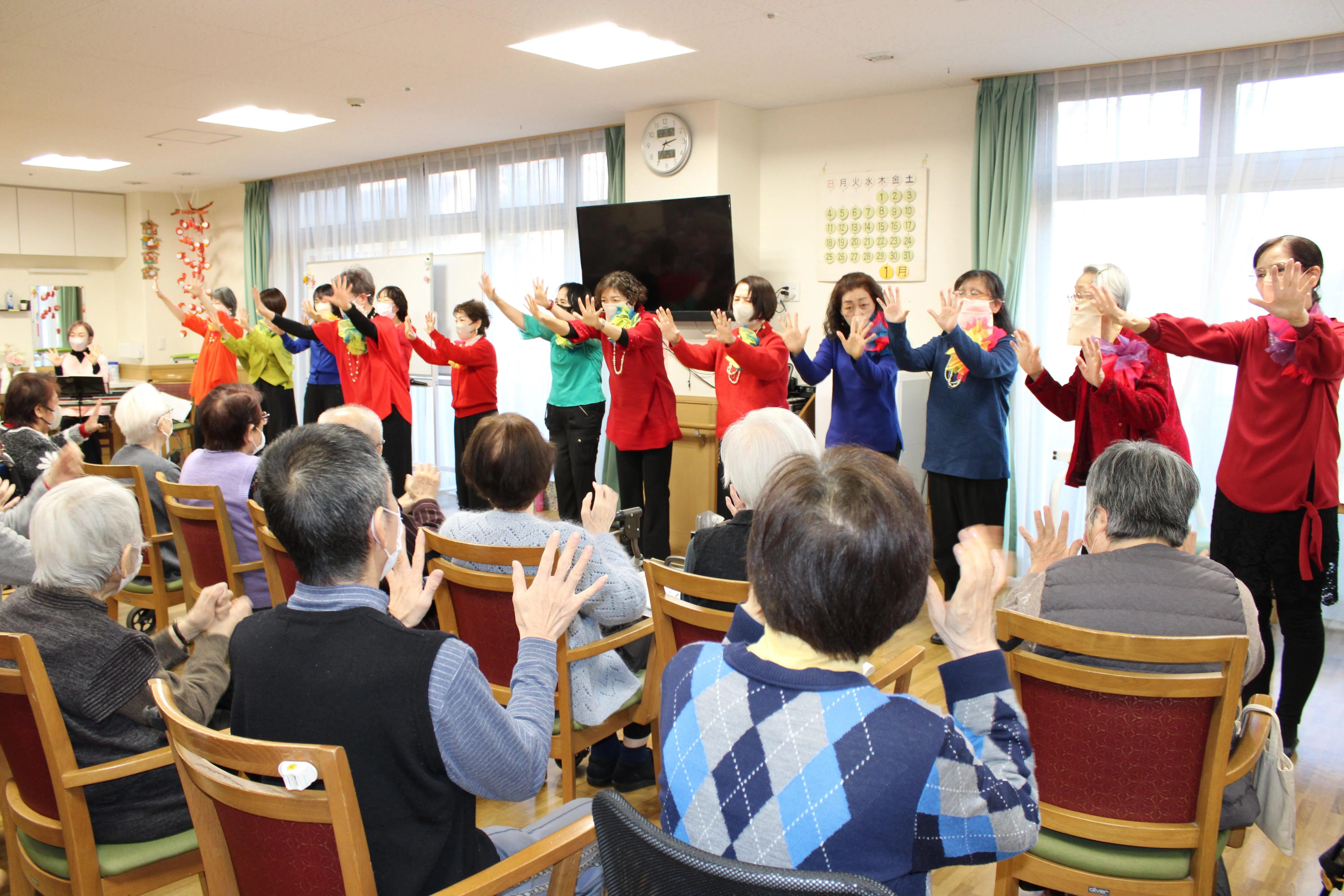 座ったまま手や足を動かし楽しめる曲や