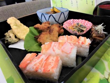 蟹の押寿司 石狩汁 かすべ(煮こごり)ジンギスカン ザンギ 千魚開きの天ぷら 彩りにしん