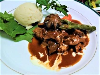 メインの自家製タンシチューは、お客様からも柔らかくておいしいと好評でした。