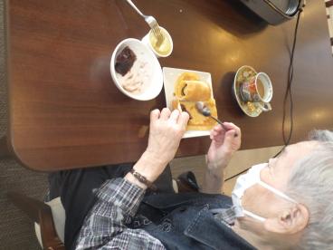「甘いものを作って食べよう!」という事で、【あんこ巻き】をお客様と作りました。
