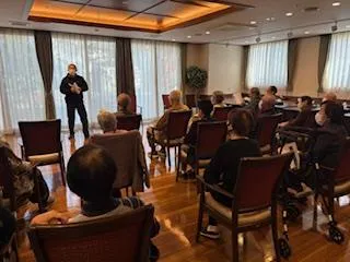 1階の食堂にて、13:00~開催致しました。懇談会の主な内容は ・お客様お顔合わせ(自己紹介) ・消防署(緑区白山出張所)講話 ・火災報知器作動・避難訓練 ・その他(ご意見・質問等)