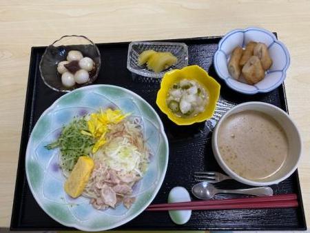 本日の昼食は、ごまだれのそうめんです。食欲のない暑い日には、とてもいいですね。