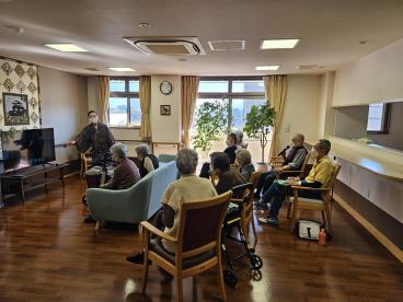 日野先生は、ご当地ソングの歌手としても有名です。日野先生が歌う「愛媛思情」に耳を傾けながら、今日は何を教えて頂けるのかと、皆さんワクワクしていました。