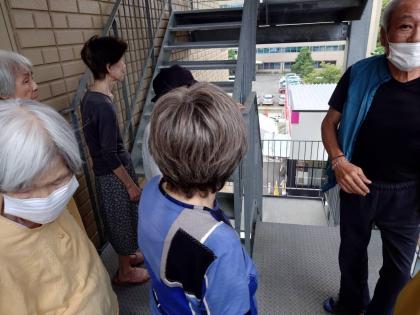 お客様から、非常階段を見てみたいとのお声が多かったので、非常口を開けて見てもらいました。いざという時の避難経路にもなりますから、このような機会にお客様に確認して頂く事は、個々の危機意識にもつながるので良かったです。
