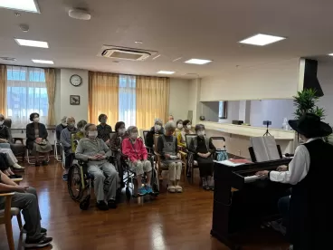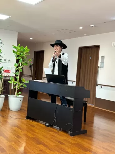 ツクイ・サンフォレスト松山のイベントには欠かせない方、箱蔵剣さんが来てくださいました。今回も素敵な歌声に癒されました。いい日旅たち・旅愁・愛しき日々・枯葉・・・など、歌謡曲からシャンソンまで、箱蔵剣さんの世界に引き込まれました。