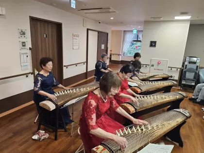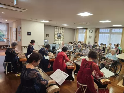 ジャンルに捉われることなく、様々な曲を演奏され、中盤には琴の演奏に合わせ、お客様が歌で参加しました。手拍子しながら楽しそうに歌っている皆さんのお顔からは笑顔がこぼれており、一体感を感じました。