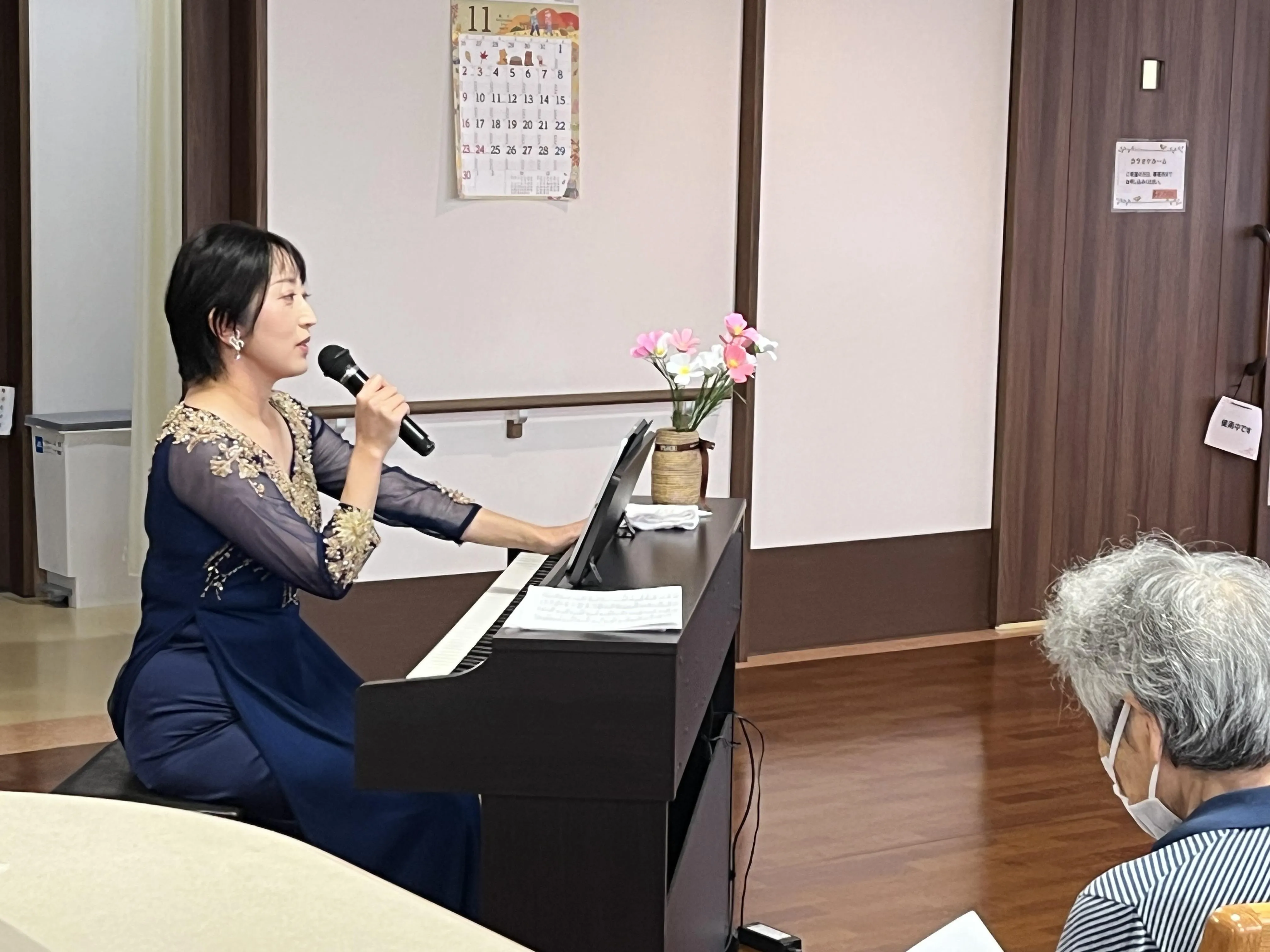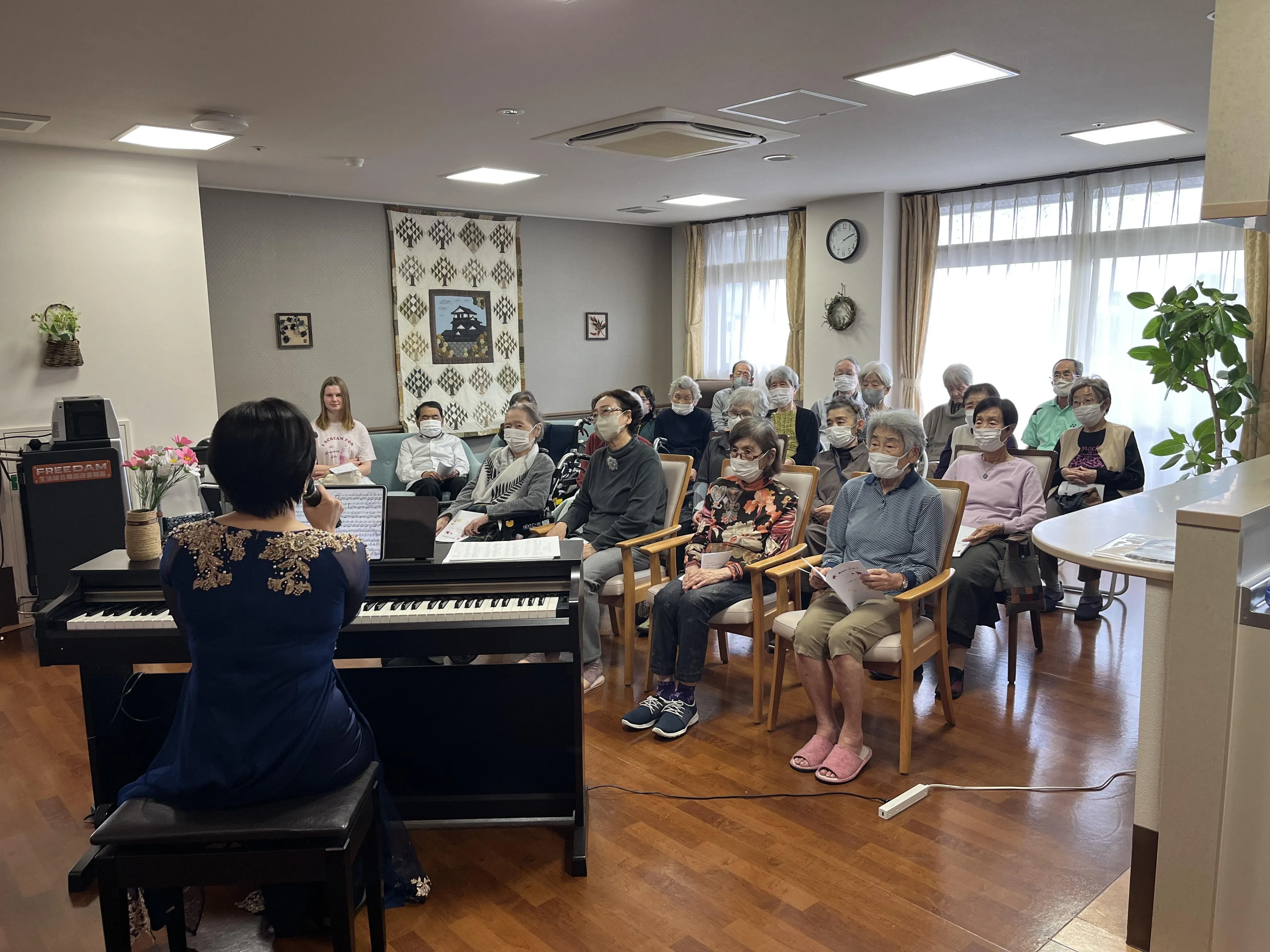 美しいピアノの音色とともに、「さびしいカシの木」の弾き語り。静かに響く旋律と、心に寄り添う歌声に、会場はしっとりとした感動に包まれました。「もみじ」「里の秋」「旅愁」誰もが口ずさめる曲では、皆さまも一緒に歌いながら楽しまれ、会場は一体感に包まれました。