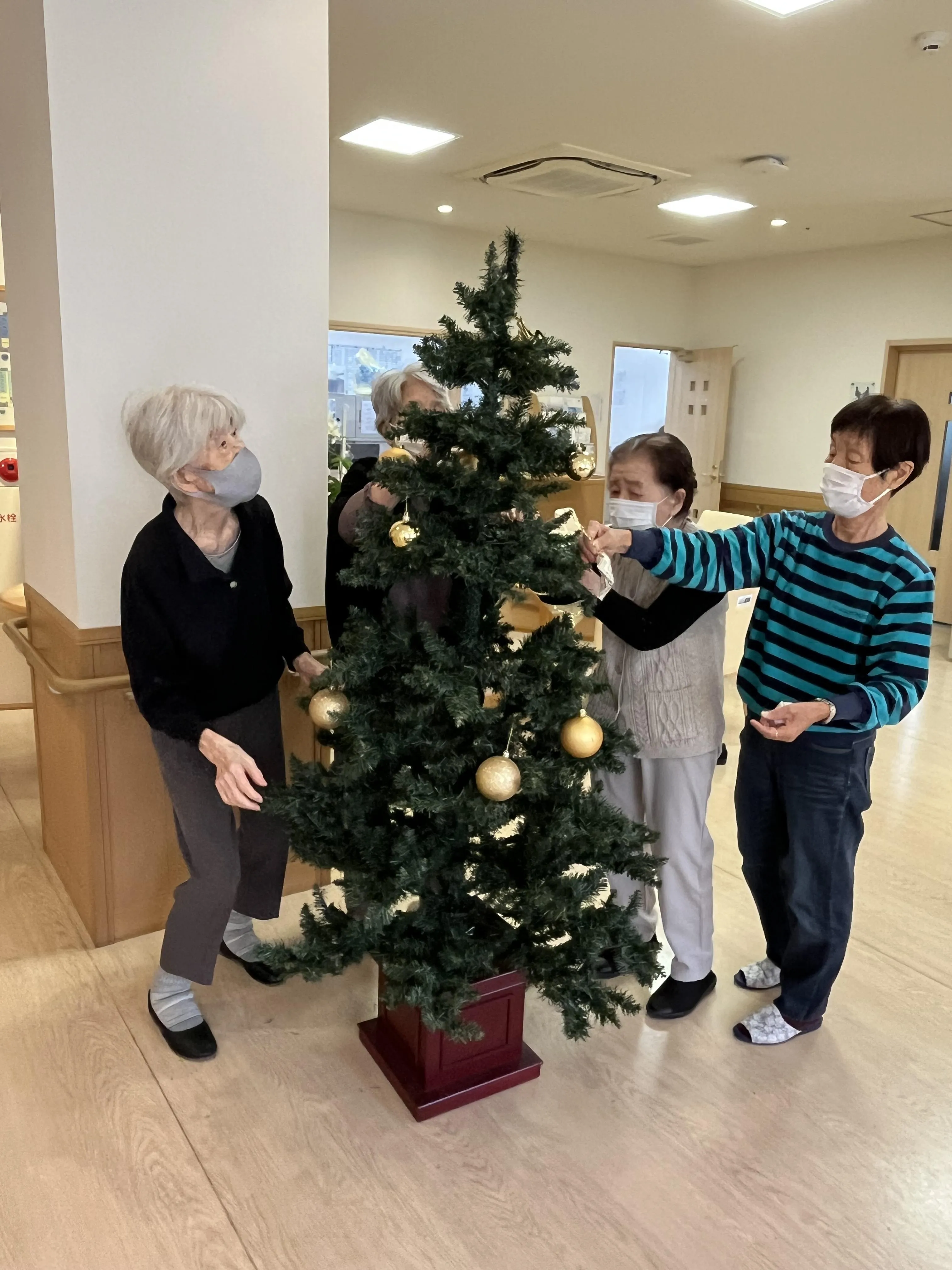エントランスには大きなクリスマスツリーが登場し、色とりどりのオーナメントで美しく彩られました。さらに、館内のあちこちには、リースや可愛らしいクリスマス小物を飾り、訪れる方々を温かくお迎えしています。これらの飾り付けは、お客様にもご協力いただき、笑顔と会話があふれる楽しいひとときとなりました。