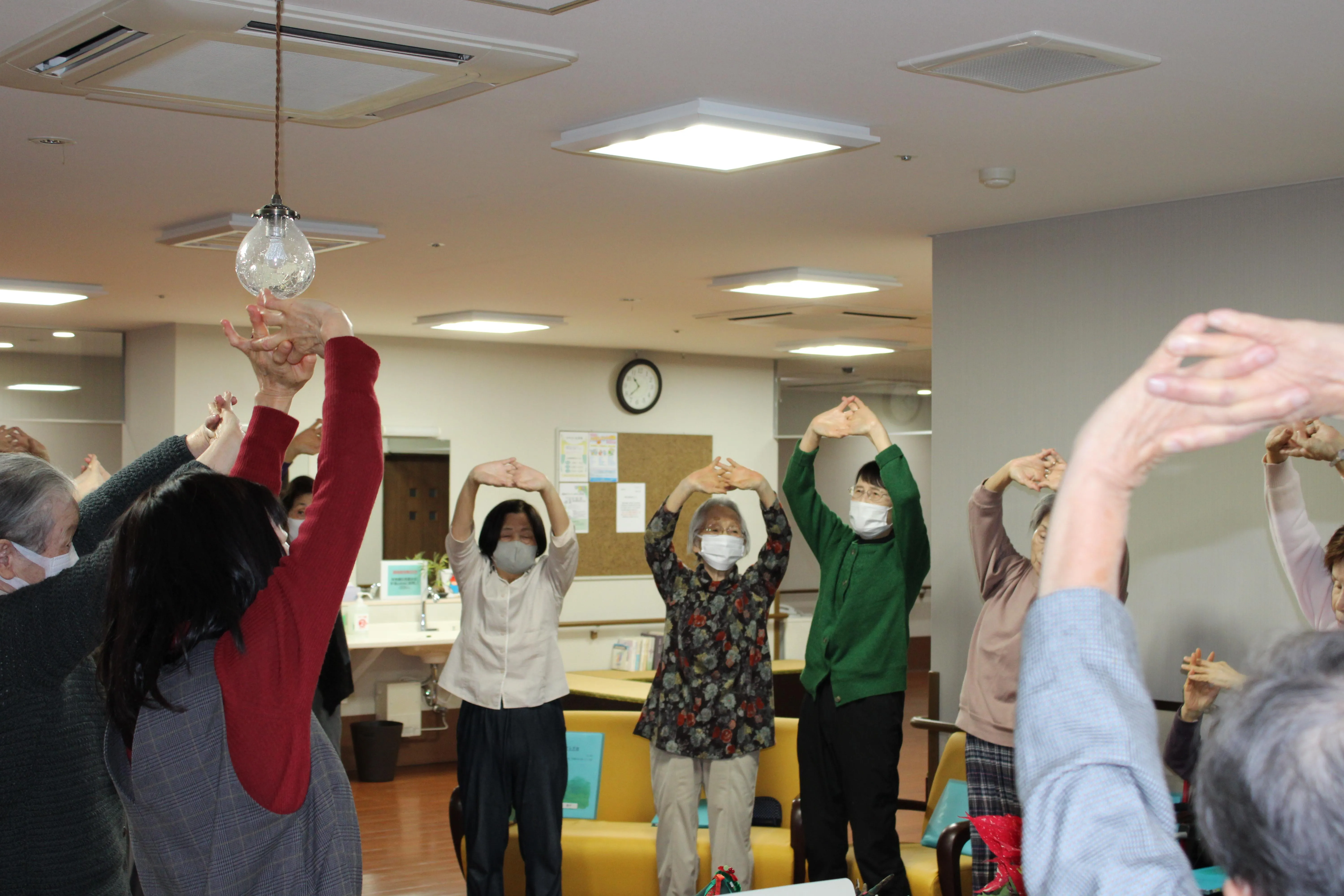 まずは、軽い体操で身体をほぐします。