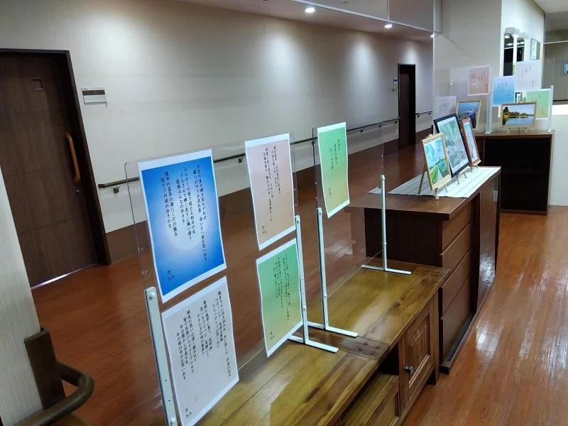 2021年から毎年開催しており、「短歌」「俳句」「絵画」「手芸作品」のほか、今年はお客様が撮影された写真や館内での主に活動の様子なども展示させていただきました。