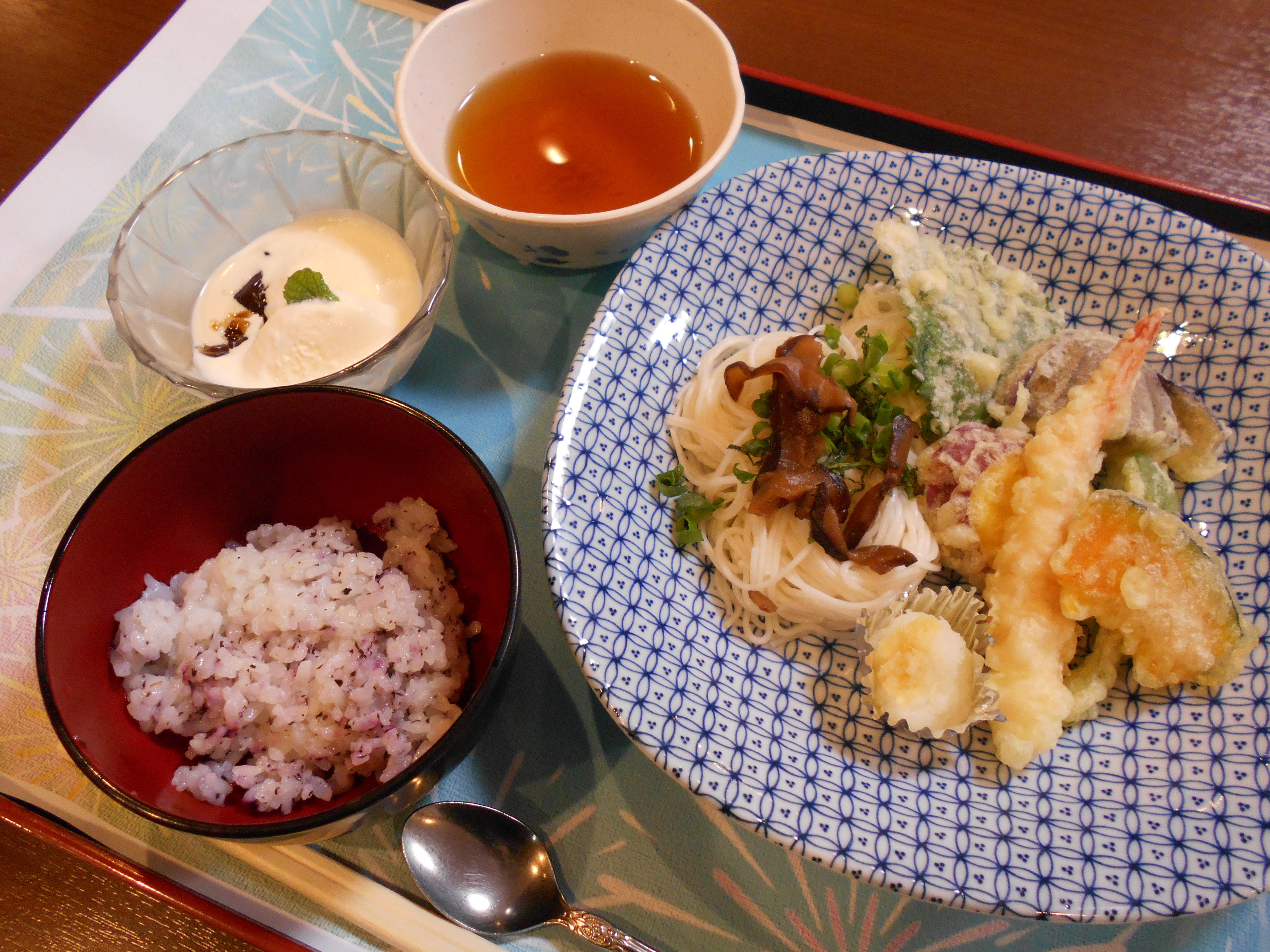 月に1回のイベント食!! 8月は「そうめん+天ぷら」みなさん大好きな天ぷら! いつも以上にたくさん召し上がり、大満足でした。