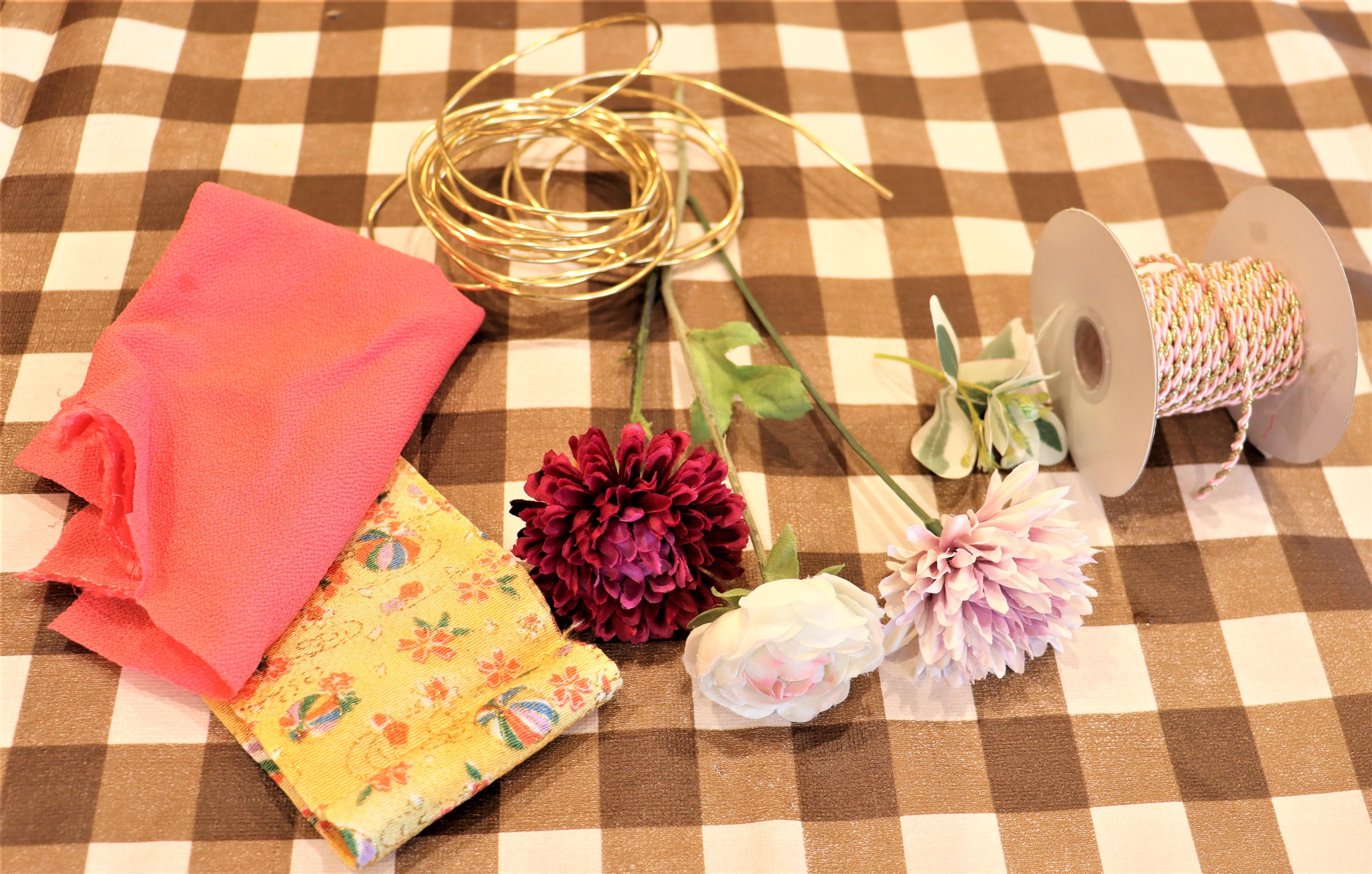 今月のカルチャーイベントは、可愛らしい和柄のちりめんを使って和風インテリアを作ります。