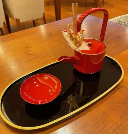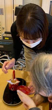 朝一番、無病息災と長寿を願い、施設長がお屠蘇をふるまいました。